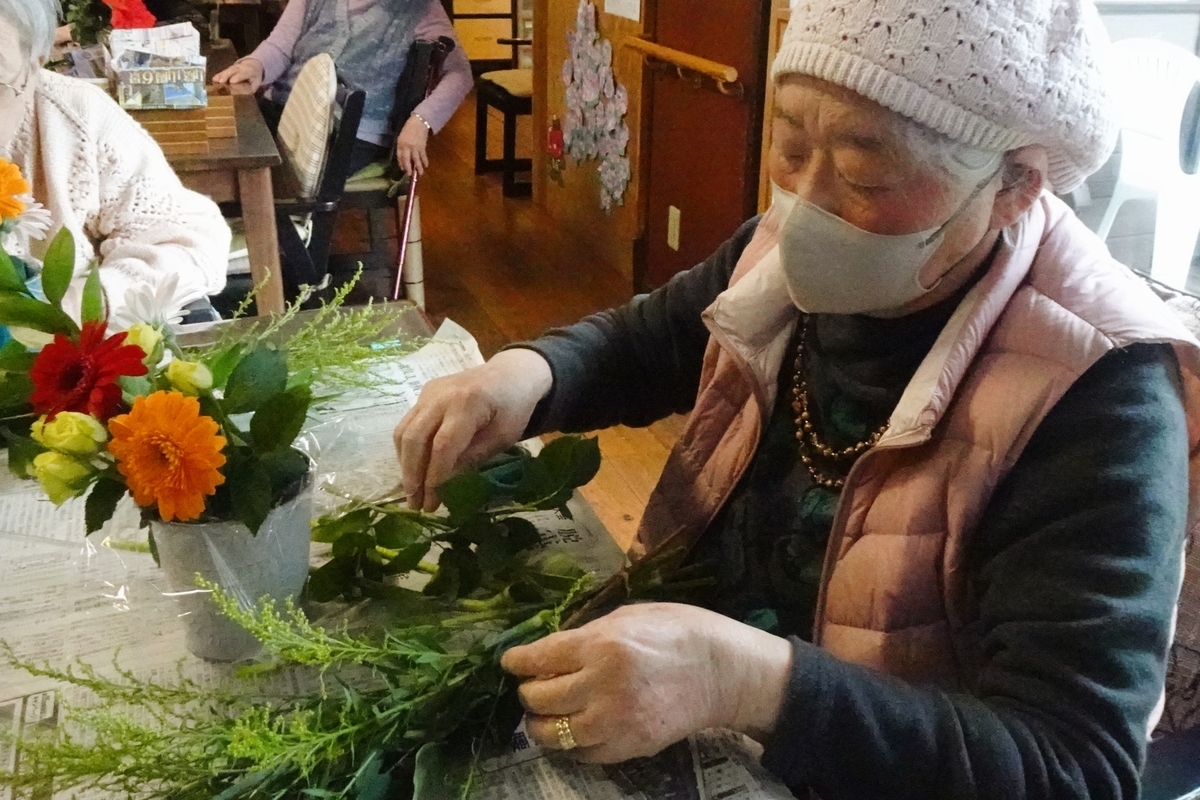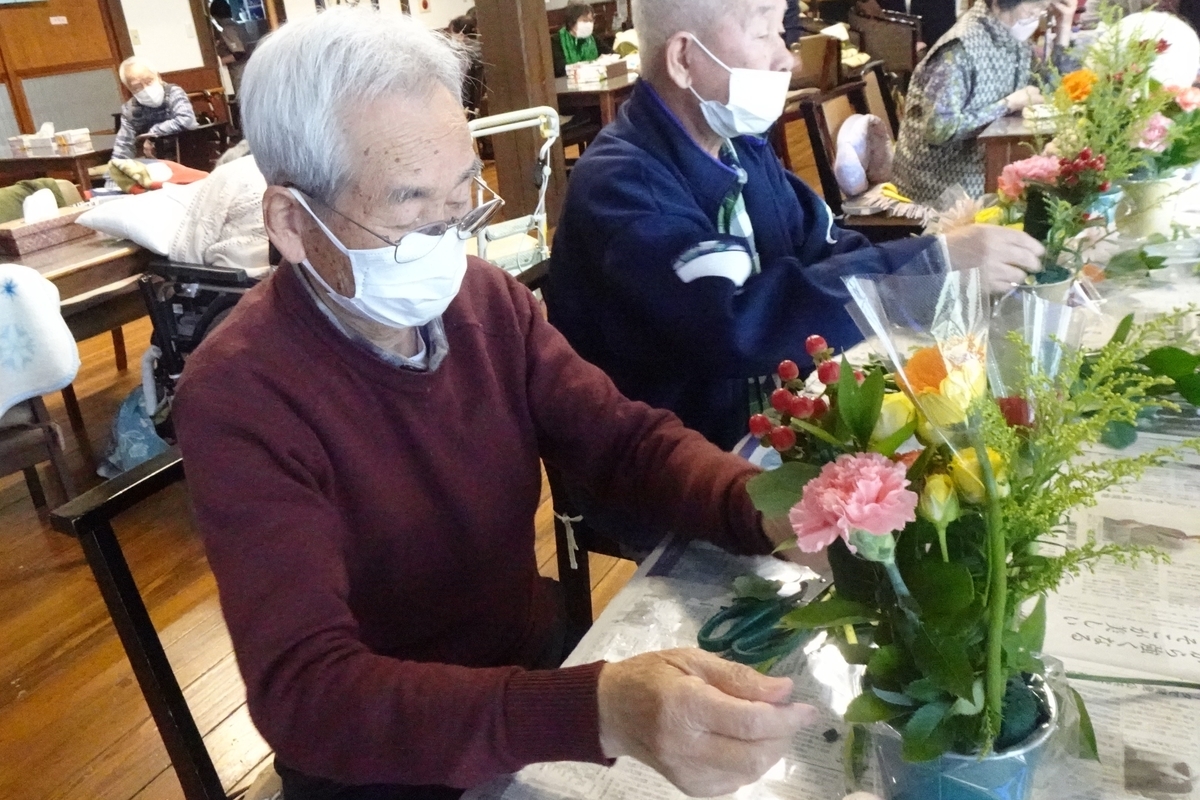 ご利用者様とフラワーアレンジメントを楽しみましたよ。